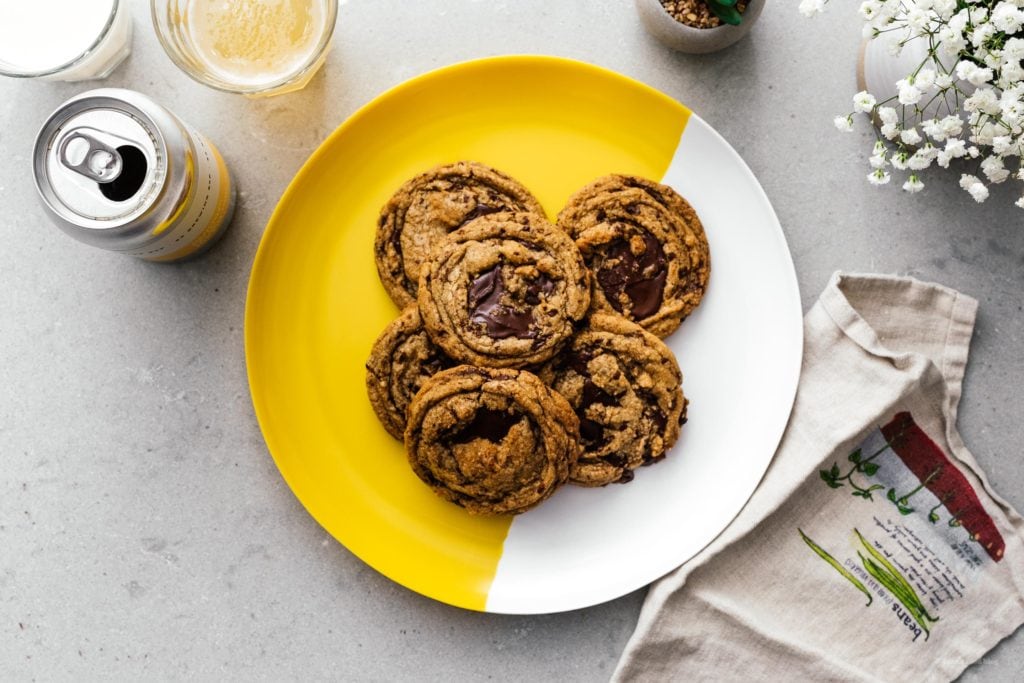 This is my ALL TIME favorite chocolate chip cookie recipe for so many reasons. It’s perfectly plush and chewy in the middle with pools of melted dark chocolate, crisp rippled edges, and nutty brown butter. There’s a full on recipe and a small batch one, so feel free to make as many (or as little) cookies as needed. I recommend you make the full batch because warm chocolate chip cookies are pure love.