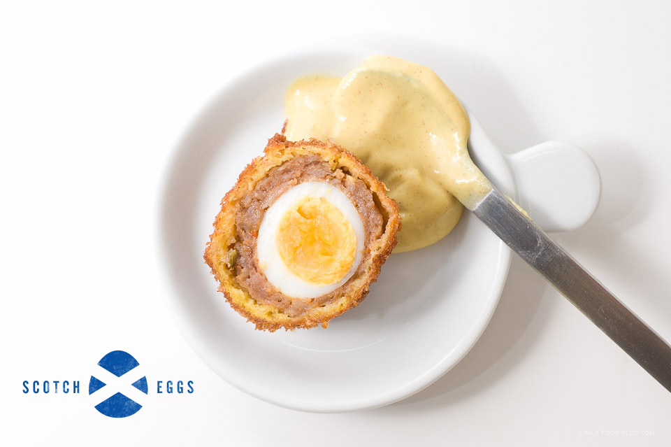 I love how cute the scotch quail eggs are. I ended up baking my scotch eggs when I posted them last month because they fell apart in the oil. I used a combination of sausage and lamb bacon, and in a true tribute to the British dish, served them with a honey mustard aioli. The funnest part was making the stop-motion video of the process!