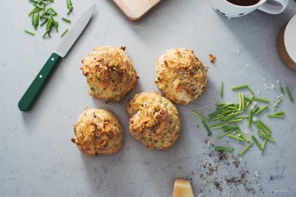 These biscuits give me LIFE in the morning. Quick and easy drop black pepper parmesan chive biscuits made with sour cream.