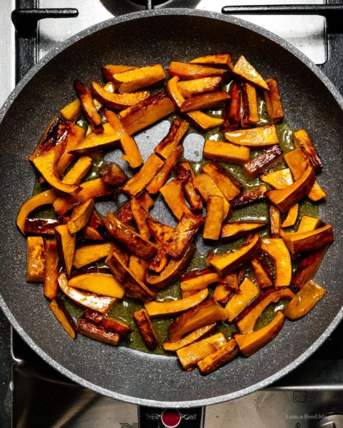 - Add the honeynut squash, season with salt and pepper and enjoy immediately!