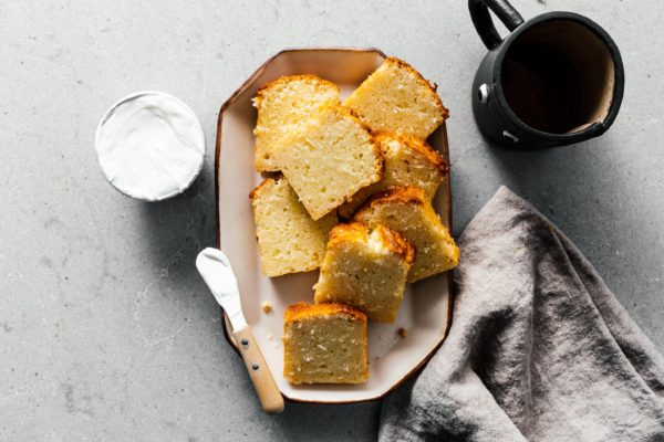 A light sweet and sturdy little lemon yogurt loaf, just like the French make.