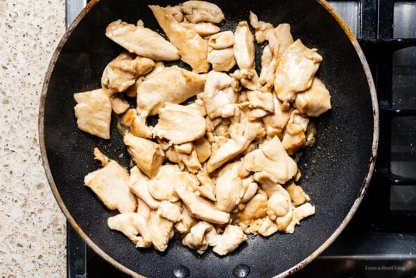 - Prepare your fluffy white rice or crispy chow mein if needed. Then, heat up 1 tbsp of oil in the same nonstick skillet over medium-high heat. When hot, add your protein and quickly stir fry until cooked through, about 3-4 minutes, then remove.