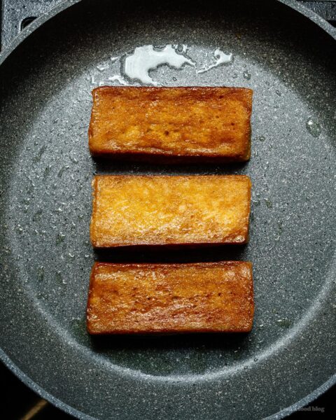 - Soak the bread as long as you can, evenly on both sides to ensure that the custard saturates and soaks all the way through. This is not a french toast recipe that has dry insides. You can even soak overnight. This of course depends on your bread though. If it’s too fresh, it might just fall apart on you, so make sure you keep an eye on it.