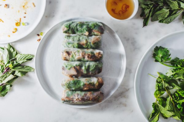 This is how we roll: perfectly cooked steak, chewy vermicelli noodles, crisp vegetables, and fresh herbs all tucked into a rice paper wrap and dipped into mixed fish sauce. Possibly the best summer meal you’ll ever have!
