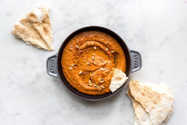 This classic Levantine dip is rich yet light, with plenty of roasted red pepper flavor, a bit of spice from aleppo chili flakes, sweet-tartness from pomegranate molasses, and nutty richness from walnuts.