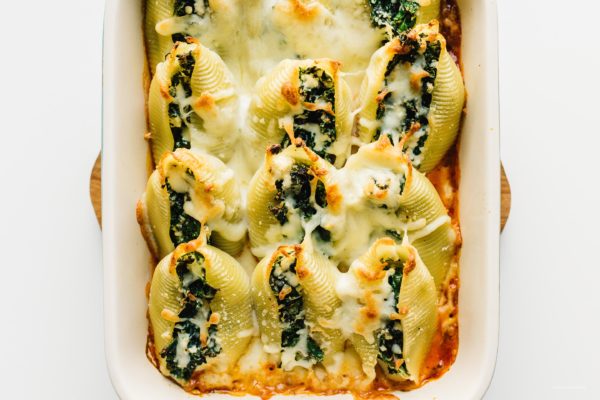 Stuffed shells get a little bit of a kale makeover โ you’ll love this cheesy kale-ier baked dish.